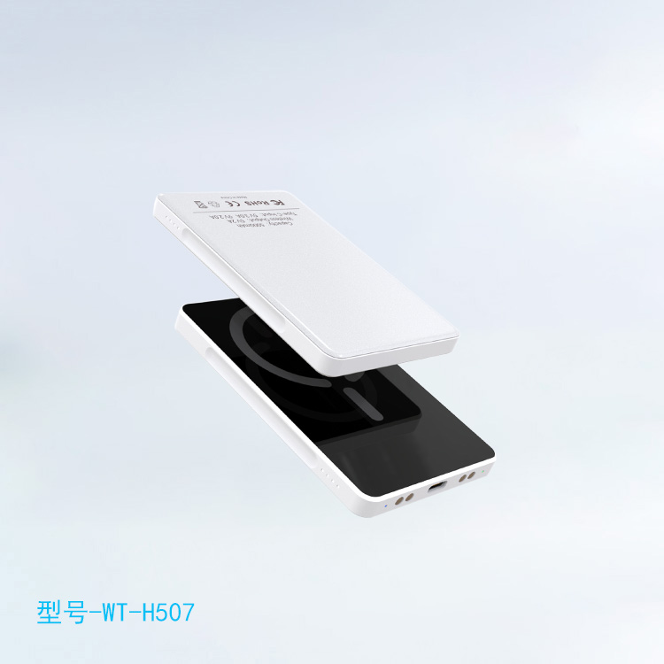 产品型号:WT-H507 产品容量:5000mAh 无线输出:5V 2A Type-C输入:5V3.0A 9V2.0A